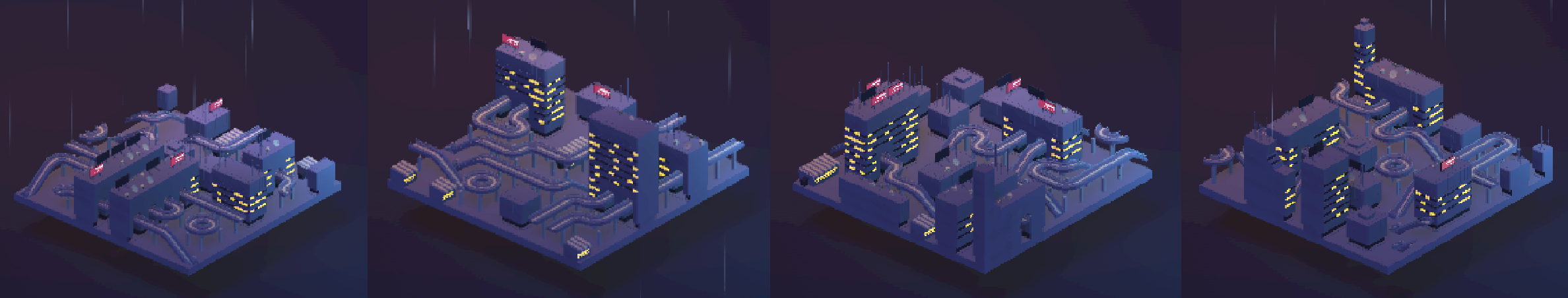 It is generated from a set of 3D tiles using the wave function collapse algorithm.